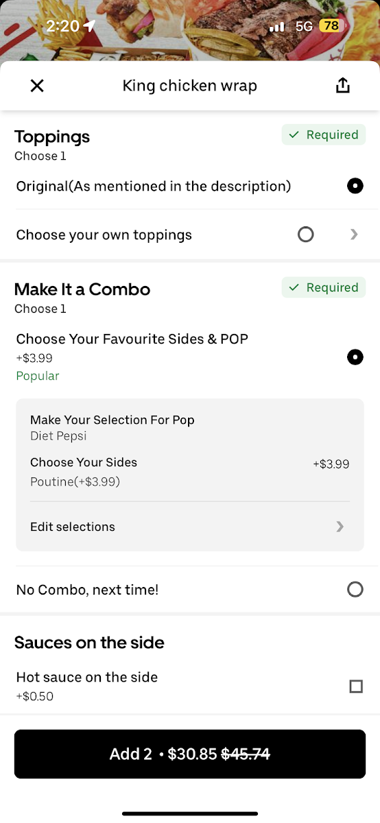 - Beef and Lamb Wraps: The King Beef and Lamb Wrap is priced at CA$14.29, a must-try for meat lovers.